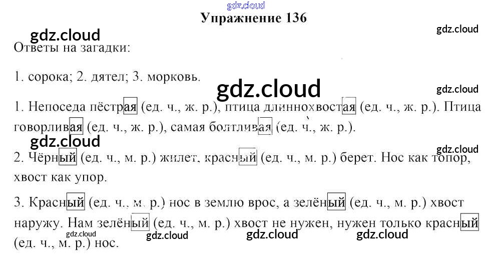 Ответ на задание упр. 136 Учебник Русский язык за 4 (четвертый) класс Антипова, Верниковская, Грабчикова 2018 Часть 1, 2