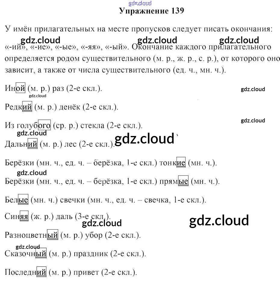 Ответ на задание упр. 139 Учебник Русский язык за 4 (четвертый) класс Антипова, Верниковская, Грабчикова 2018 Часть 1, 2