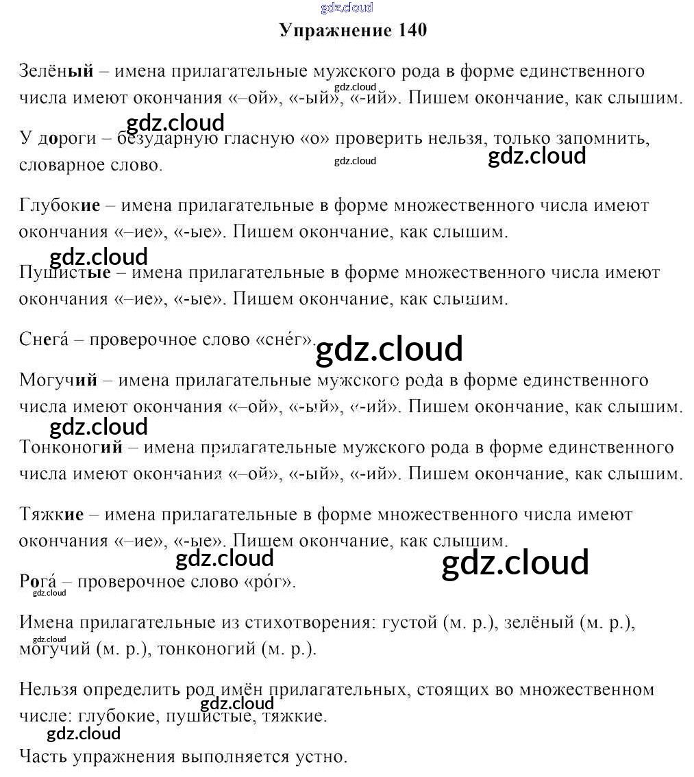 Ответ на задание упр. 140 Учебник Русский язык за 4 (четвертый) класс Антипова, Верниковская, Грабчикова 2018 Часть 1, 2