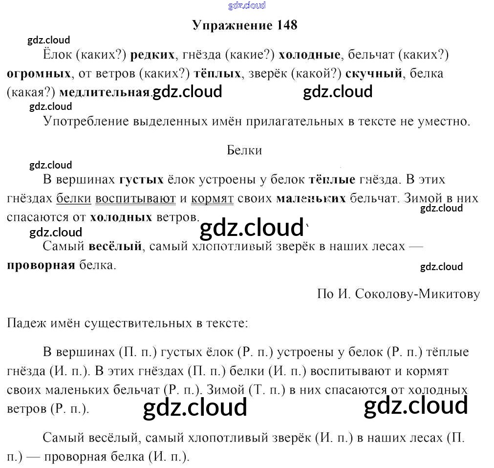 Ответ на задание упр. 148 Учебник Русский язык за 4 (четвертый) класс Антипова, Верниковская, Грабчикова 2018 Часть 1, 2