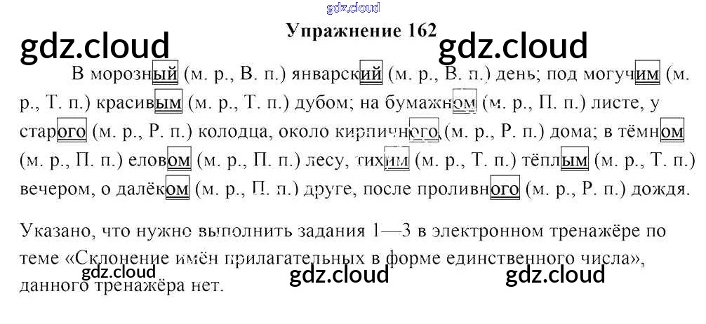 Ответ на задание упр. 162 Учебник Русский язык за 4 (четвертый) класс Антипова, Верниковская, Грабчикова 2018 Часть 1, 2