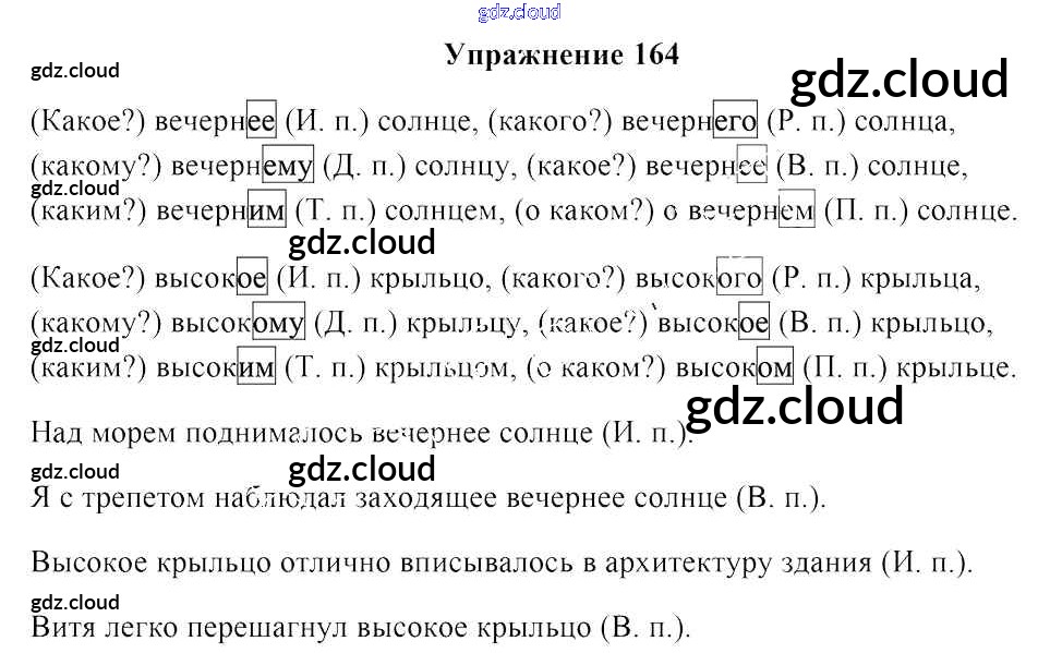 Ответ на задание упр. 164 Учебник Русский язык за 4 (четвертый) класс Антипова, Верниковская, Грабчикова 2018 Часть 1, 2