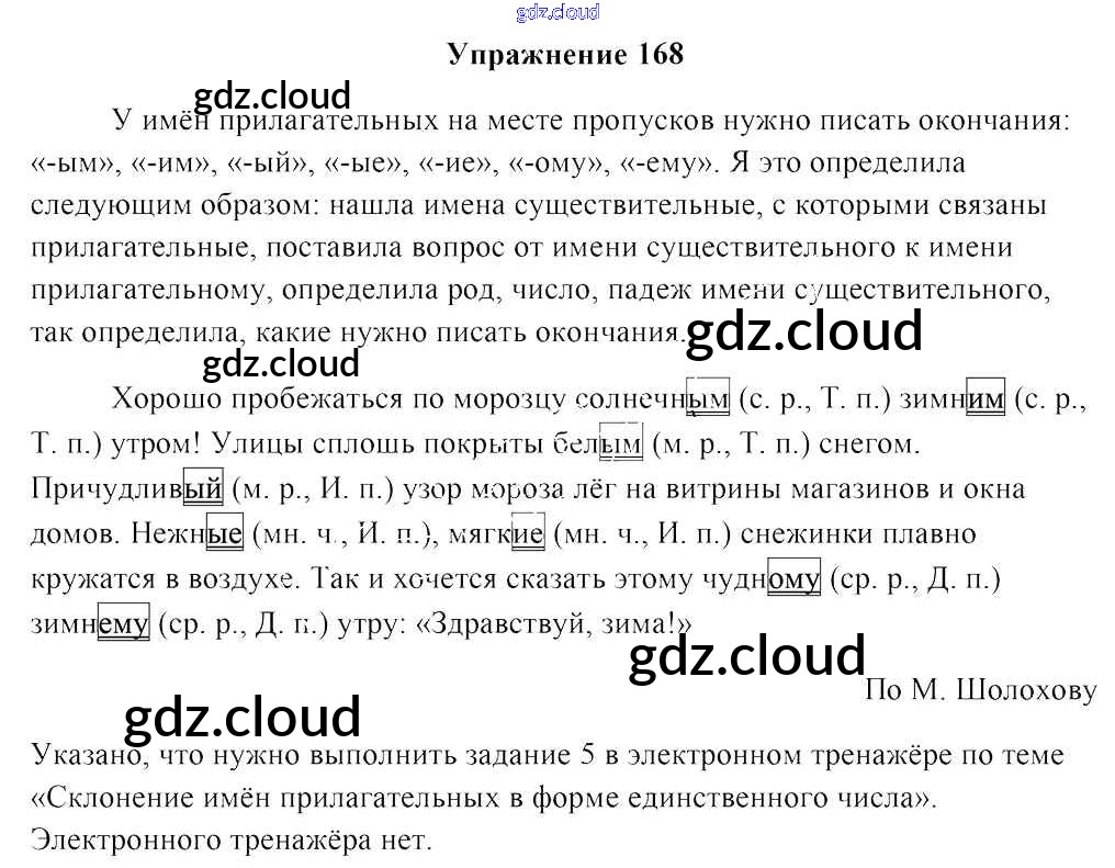 Ответ на задание упр. 168 Учебник Русский язык за 4 (четвертый) класс Антипова, Верниковская, Грабчикова 2018 Часть 1, 2