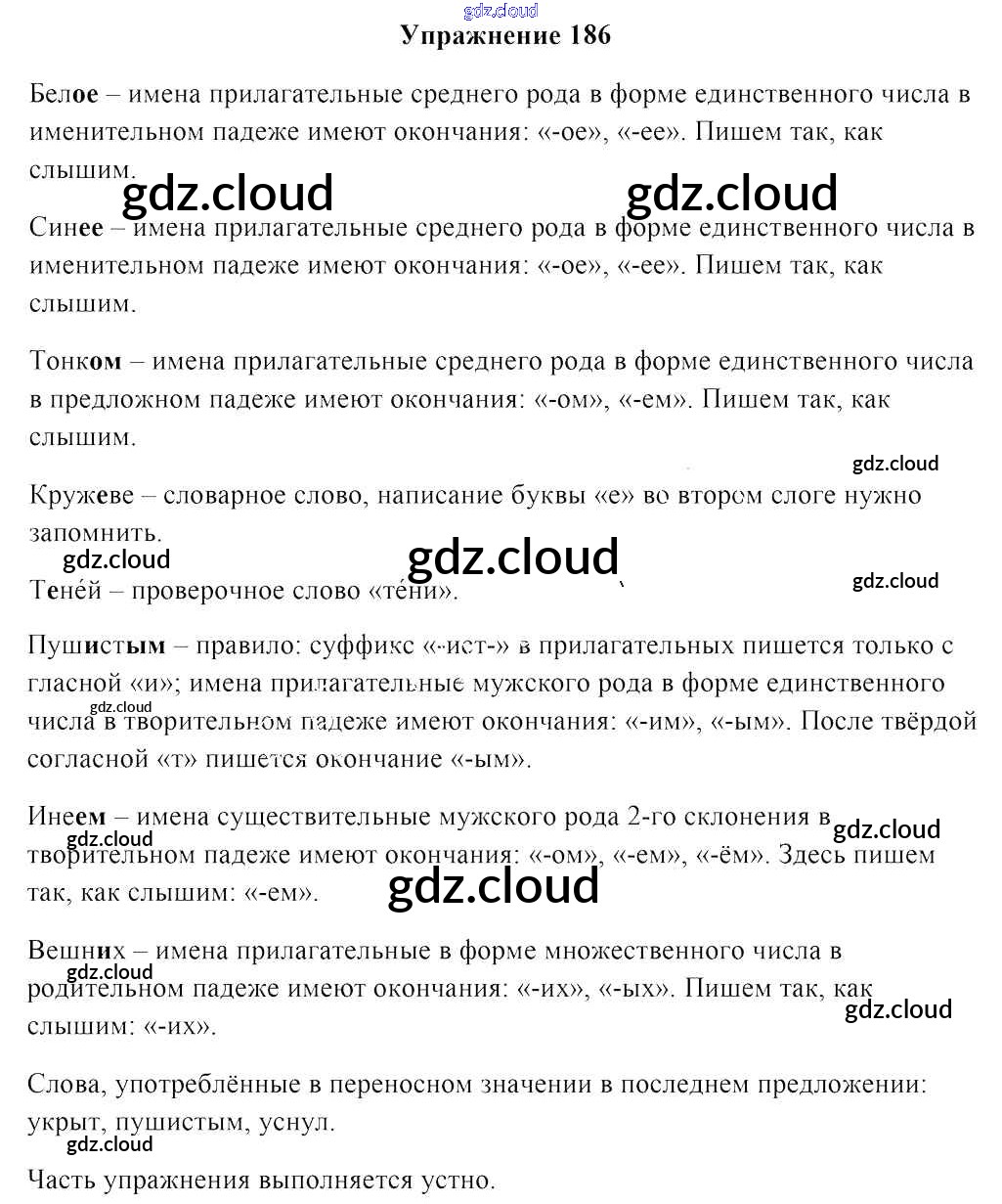 Ответ на задание упр. 186 Учебник Русский язык за 4 (четвертый) класс Антипова, Верниковская, Грабчикова 2018 Часть 1, 2