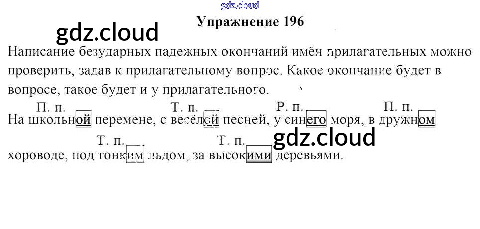 Ответ на задание упр. 196 Учебник Русский язык за 4 (четвертый) класс Антипова, Верниковская, Грабчикова 2018 Часть 1, 2