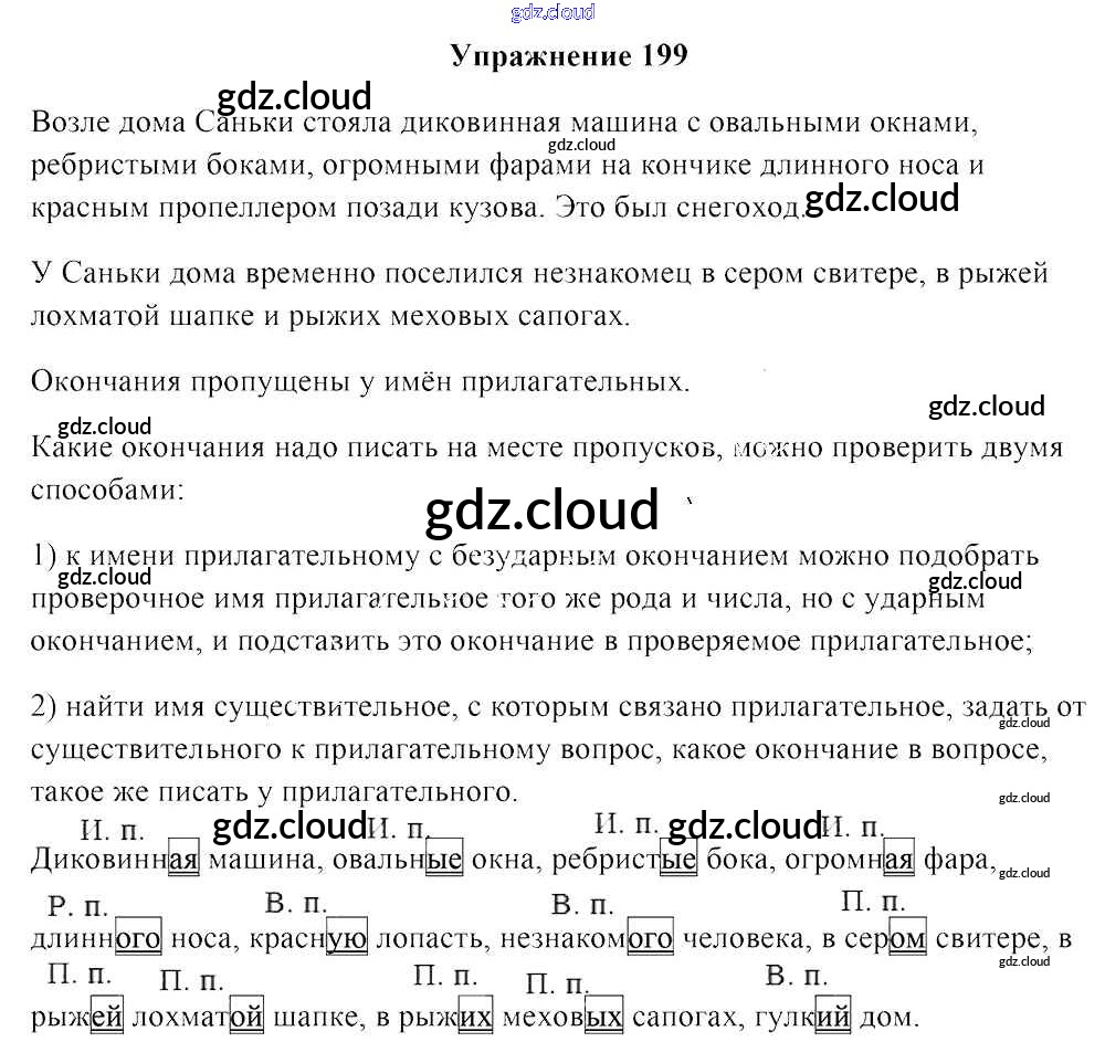 Ответ на задание упр. 199 Учебник Русский язык за 4 (четвертый) класс Антипова, Верниковская, Грабчикова 2018 Часть 1, 2