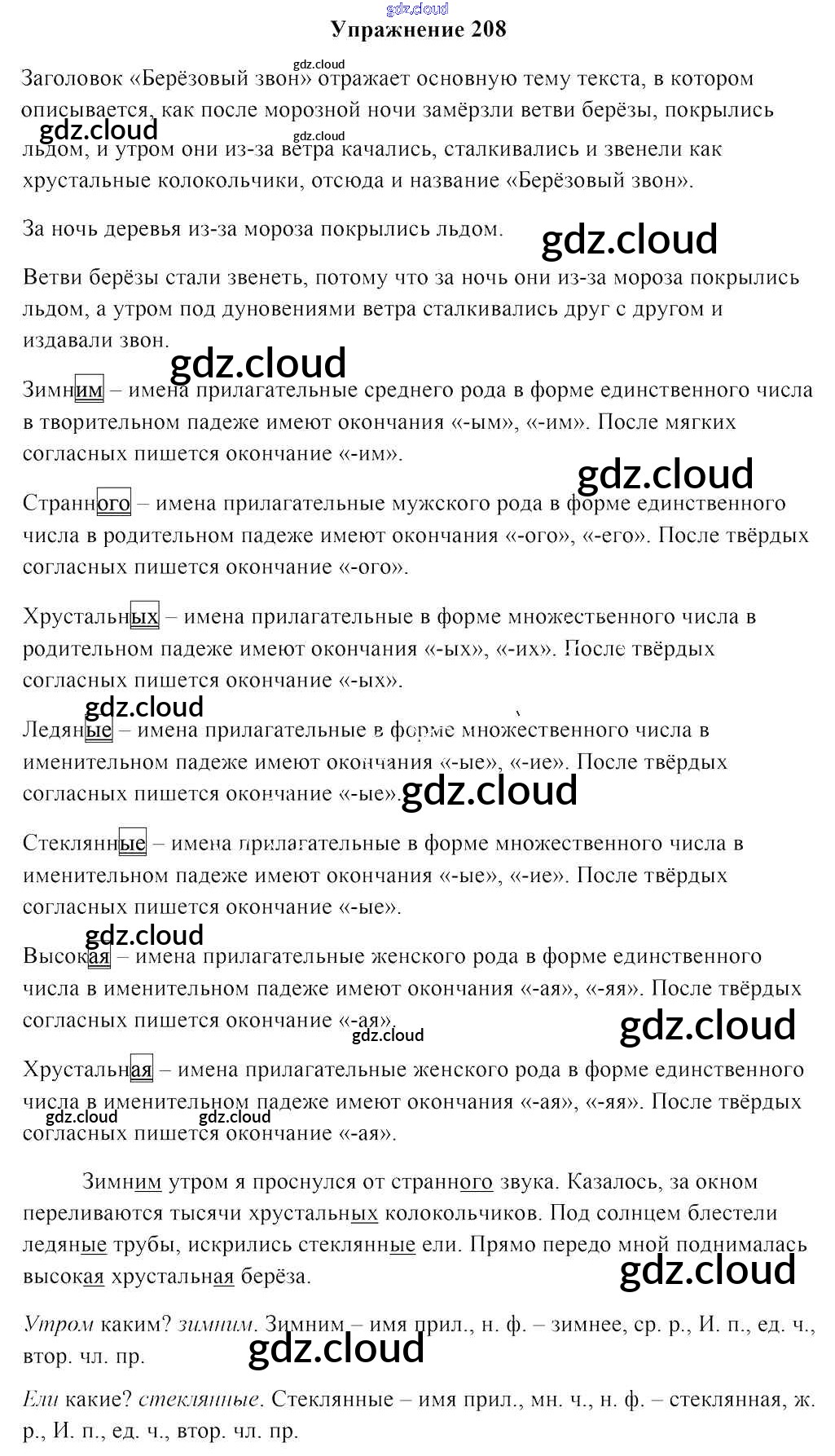 Ответ на задание упр. 208 Учебник Русский язык за 4 (четвертый) класс Антипова, Верниковская, Грабчикова 2018 Часть 1, 2