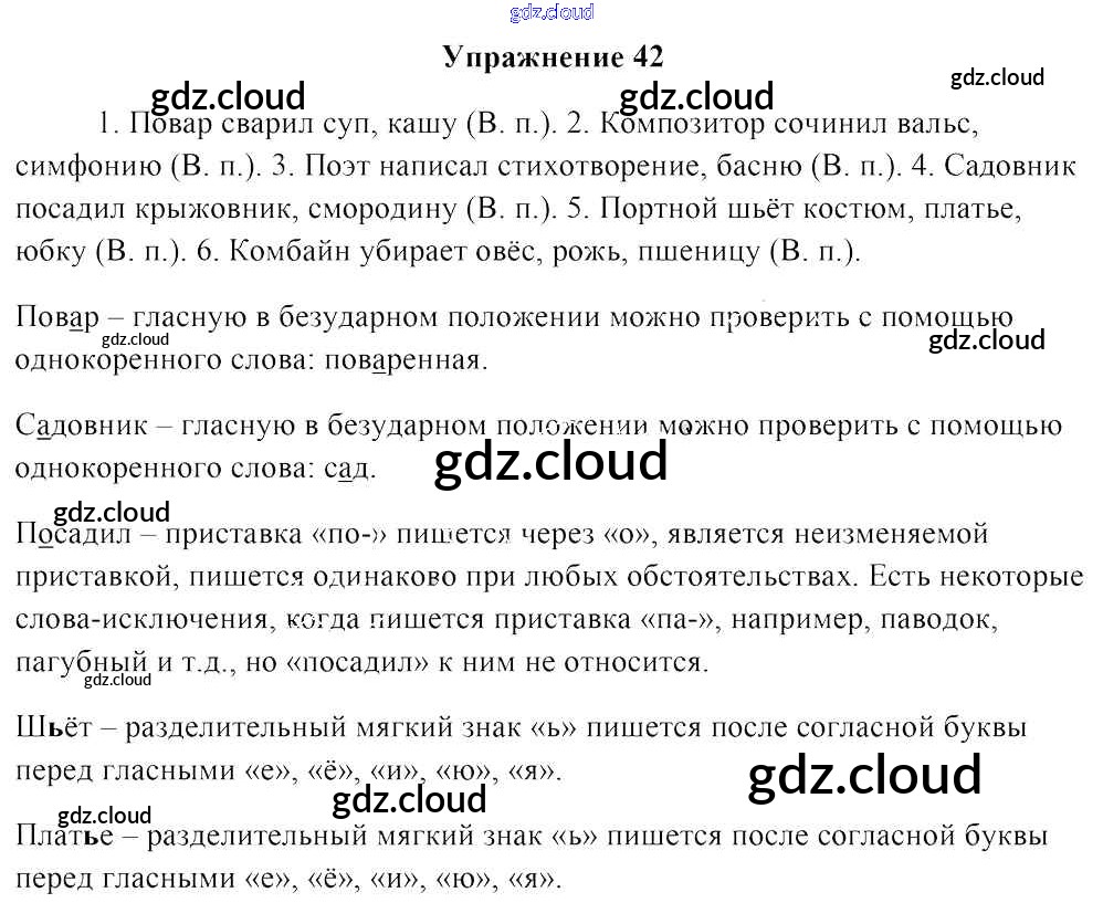 Ответ на задание упр. 42 Учебник Русский язык за 4 (четвертый) класс Антипова, Верниковская, Грабчикова 2018 Часть 1, 2