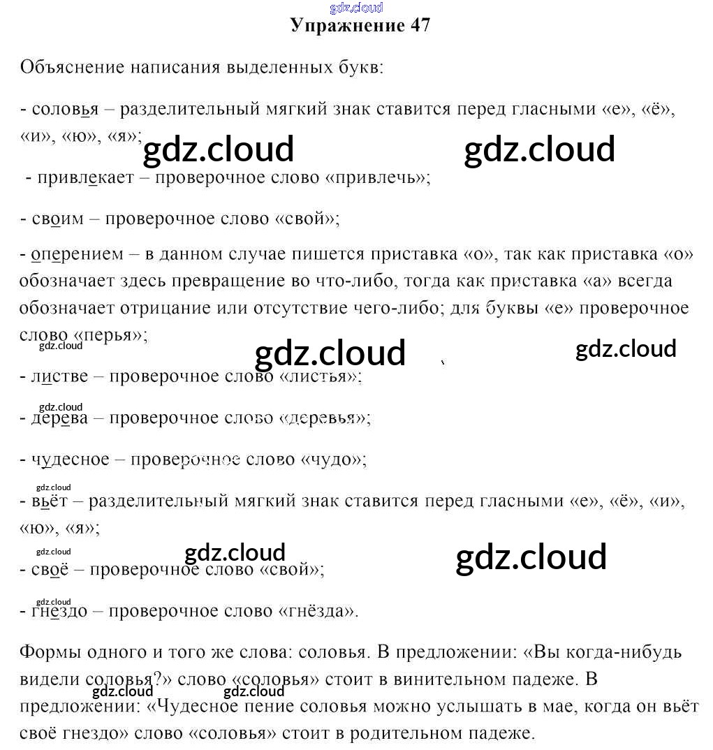 Ответ на задание упр. 47 Учебник Русский язык за 4 (четвертый) класс Антипова, Верниковская, Грабчикова 2018 Часть 1, 2