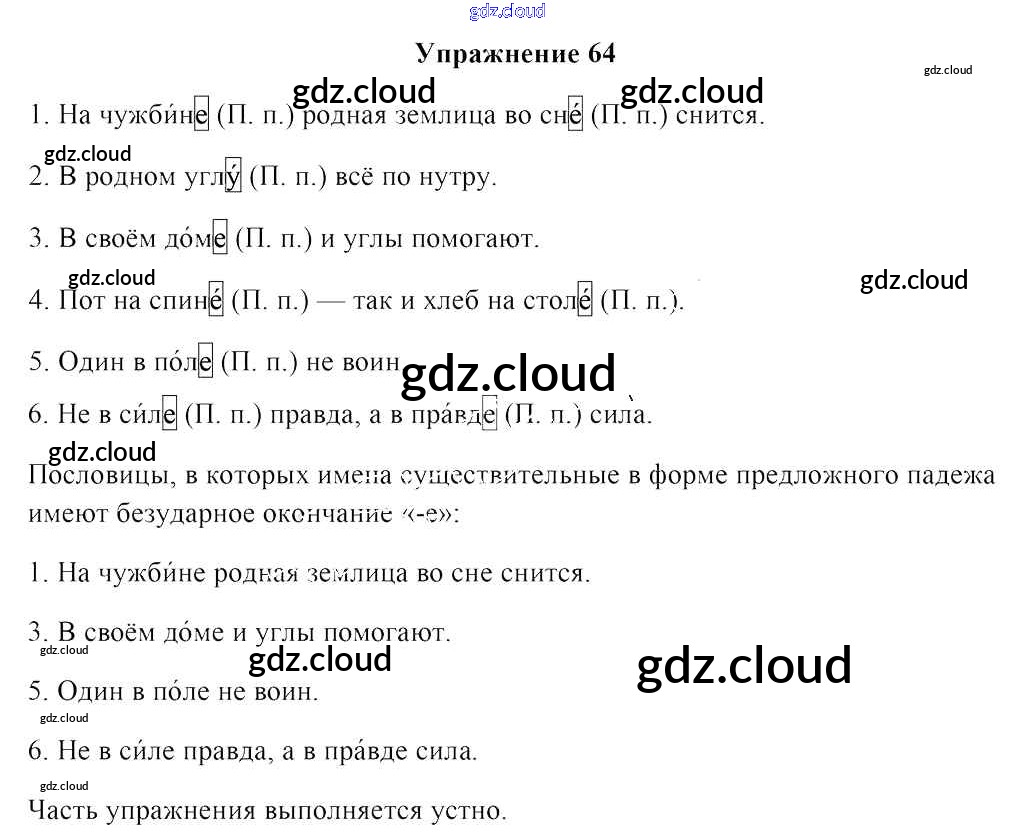 Ответ на задание упр. 64 Учебник Русский язык за 4 (четвертый) класс Антипова, Верниковская, Грабчикова 2018 Часть 1, 2