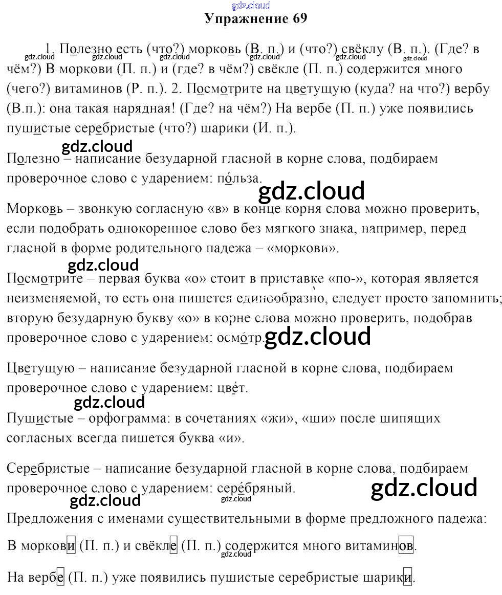 Ответ на задание упр. 69 Учебник Русский язык за 4 (четвертый) класс Антипова, Верниковская, Грабчикова 2018 Часть 1, 2