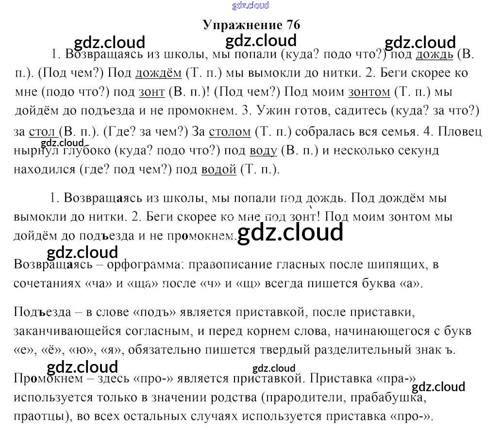 Ответ на задание упр. 76 Учебник Русский язык за 4 (четвертый) класс Антипова, Верниковская, Грабчикова 2018 Часть 1, 2