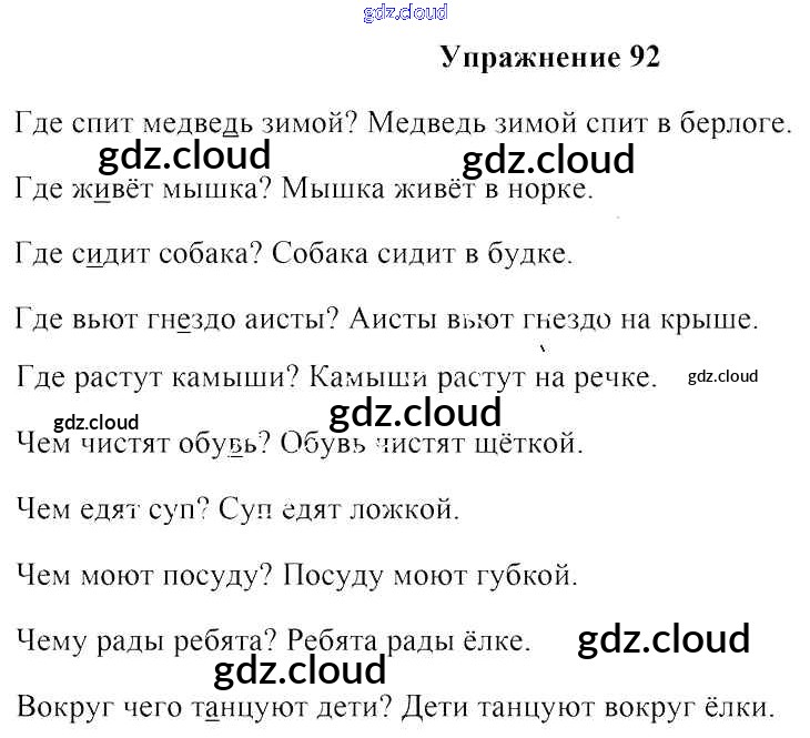 Ответ на задание упр. 92 Учебник Русский язык за 4 (четвертый) класс Антипова, Верниковская, Грабчикова 2018 Часть 1, 2