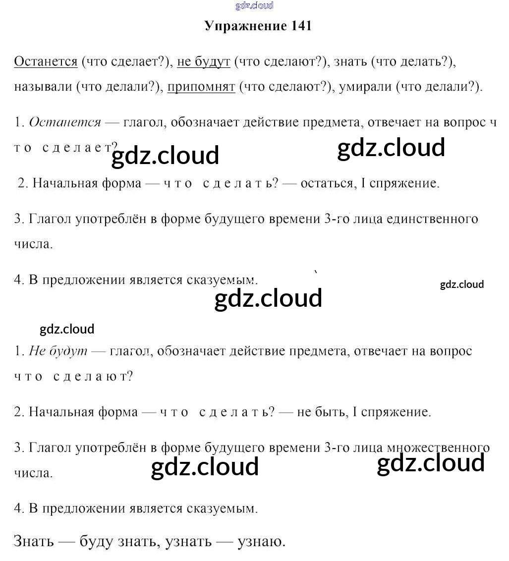 Ответ на задание упр. 141 Учебник Русский язык за 4 (четвертый) класс Антипова, Верниковская, Грабчикова 2018 Часть 1, 2