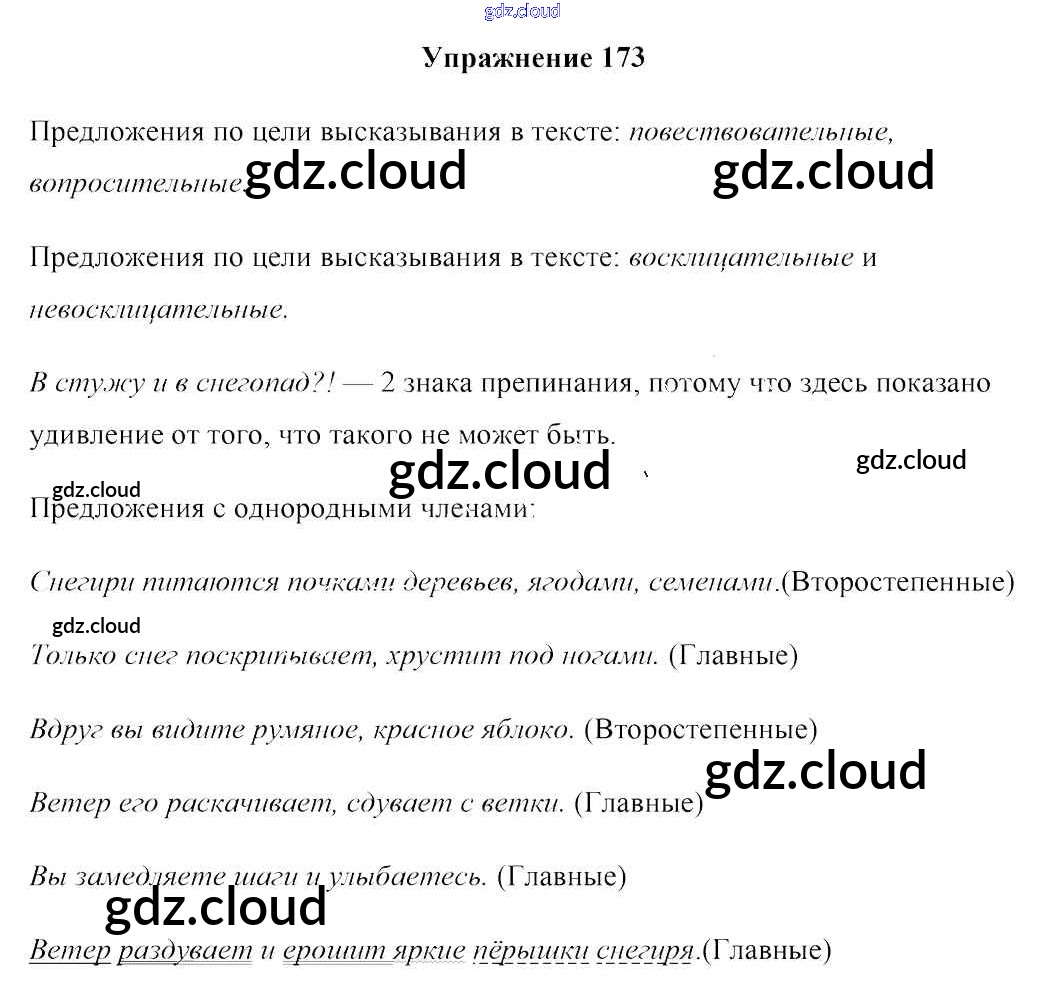 Ответ на задание упр. 173 Учебник Русский язык за 4 (четвертый) класс Антипова, Верниковская, Грабчикова 2018 Часть 1, 2