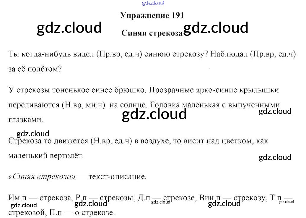 Ответ на задание упр. 191 Учебник Русский язык за 4 (четвертый) класс Антипова, Верниковская, Грабчикова 2018 Часть 1, 2