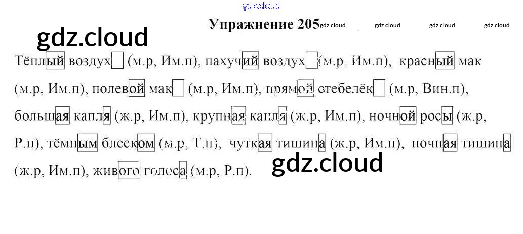 Ответ на задание упр. 205 Учебник Русский язык за 4 (четвертый) класс Антипова, Верниковская, Грабчикова 2018 Часть 1, 2
