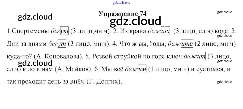Ответ на задание упр. 74 Учебник Русский язык за 4 (четвертый) класс Антипова, Верниковская, Грабчикова 2018 Часть 1, 2