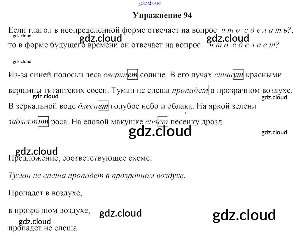 Ответ на задание упр. 94 Учебник Русский язык за 4 (четвертый) класс Антипова, Верниковская, Грабчикова 2018 Часть 1, 2