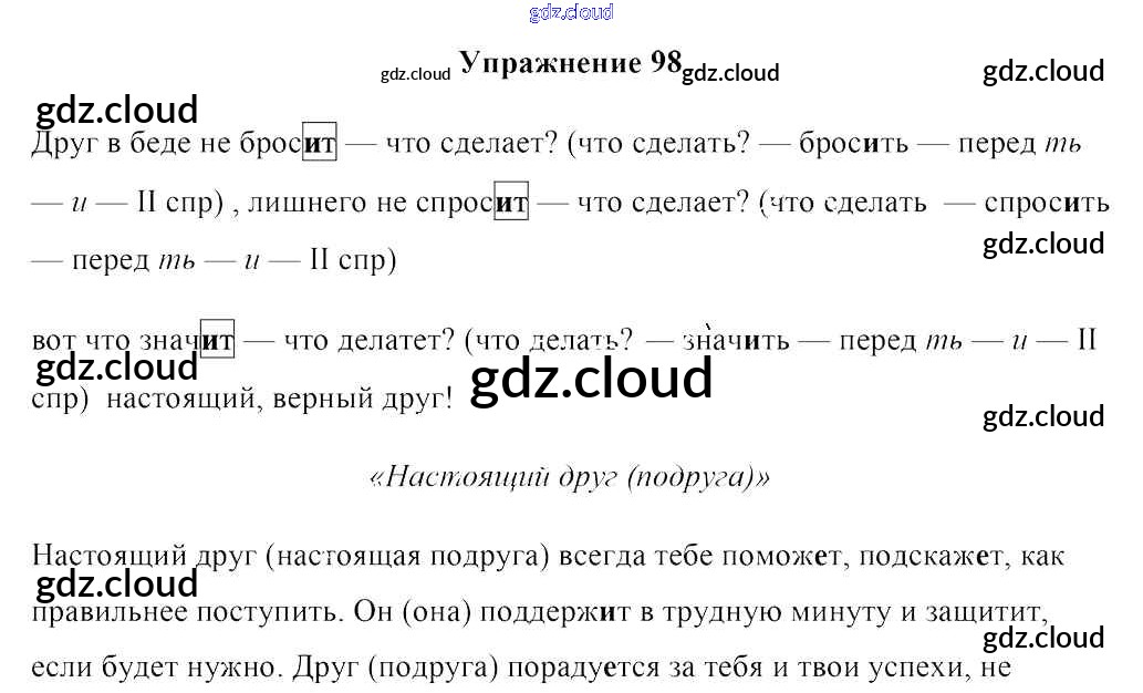 Ответ на задание упр. 98 Учебник Русский язык за 4 (четвертый) класс Антипова, Верниковская, Грабчикова 2018 Часть 1, 2