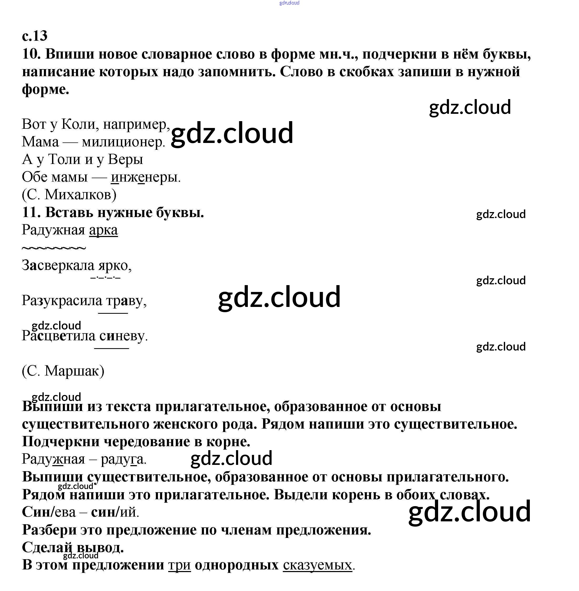 Ответ на задание 13 Тетрадь для самостоятельной работы Русский язык за 4 (четвертый) класс Байкова 2016 Часть 1, 2