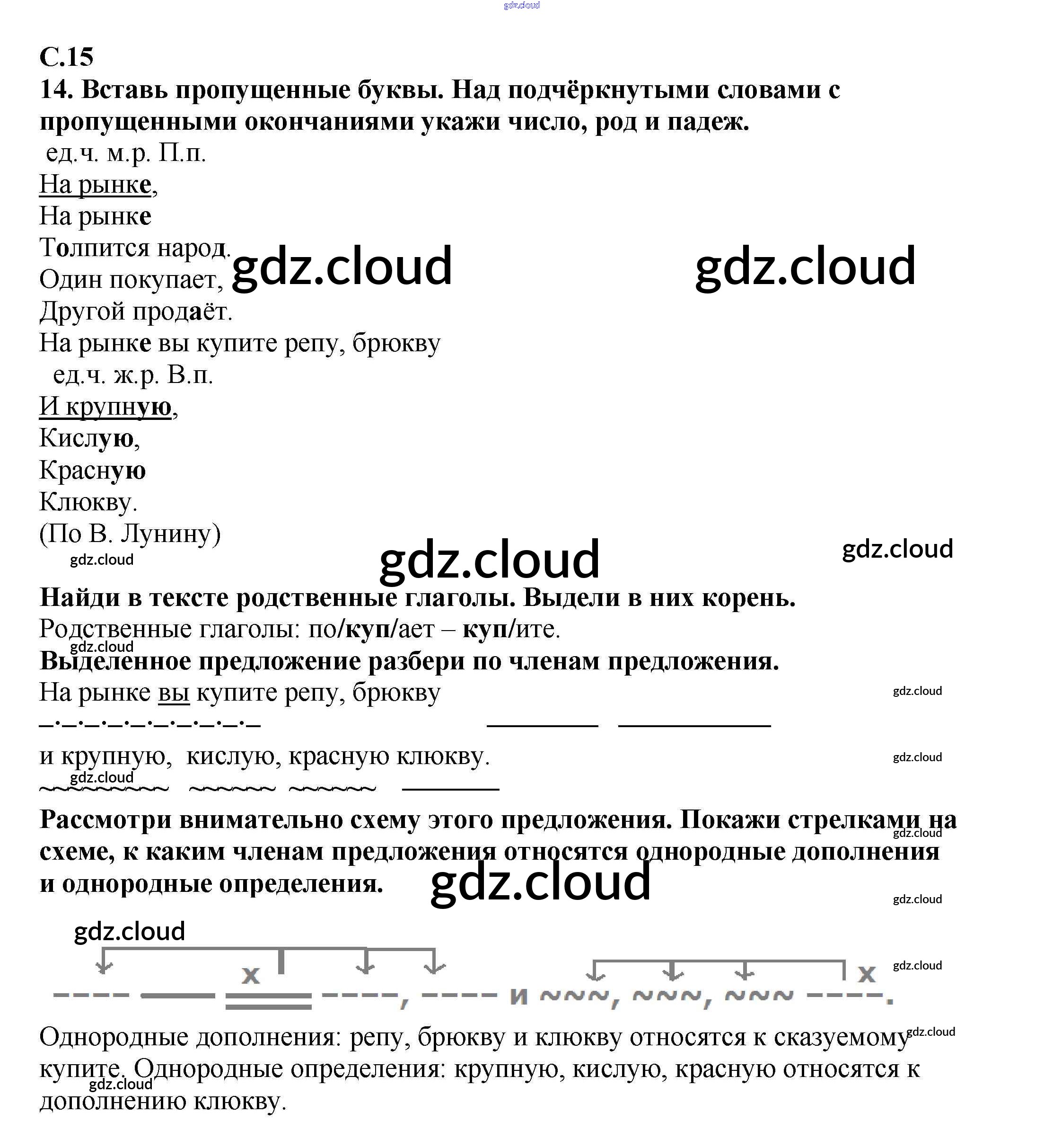 Ответ на задание 15 Тетрадь для самостоятельной работы Русский язык за 4 (четвертый) класс Байкова 2016 Часть 1, 2
