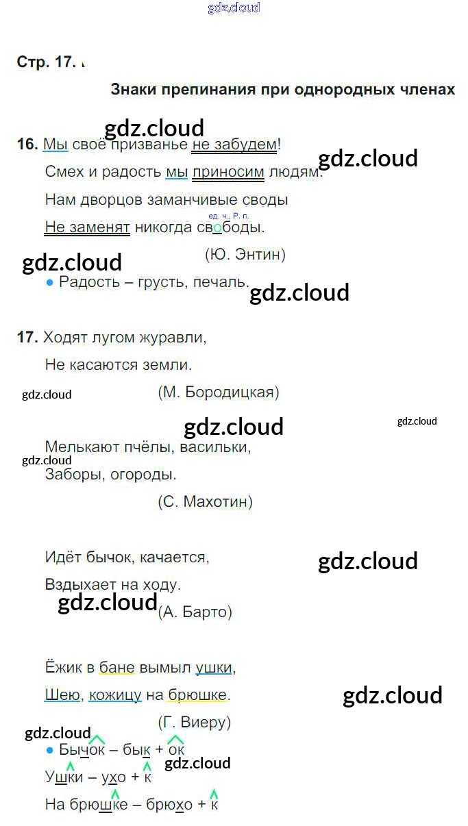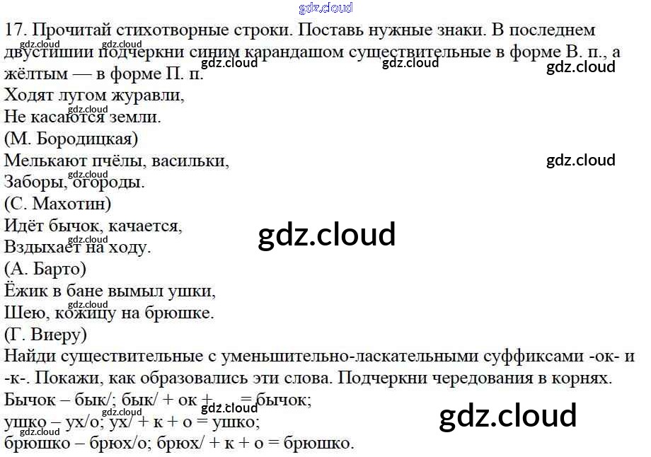 Ответ на задание 17 Тетрадь для самостоятельной работы Русский язык за 4 (четвертый) класс Байкова 2016 Часть 1, 2