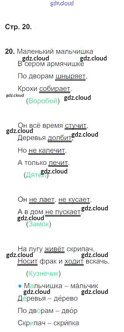 Ответ на задание 20 Тетрадь для самостоятельной работы Русский язык за 4 (четвертый) класс Байкова 2016 Часть 1, 2