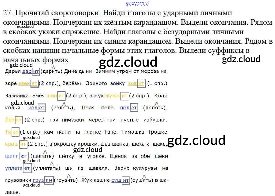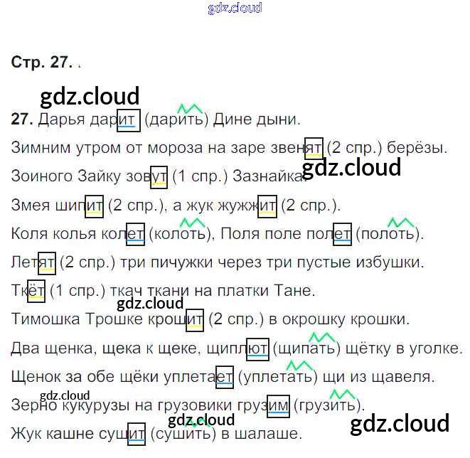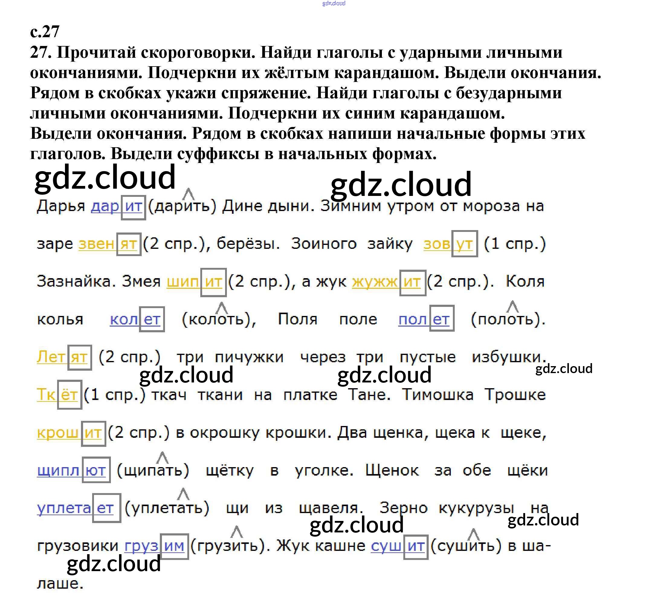 Ответ на задание 27 Тетрадь для самостоятельной работы Русский язык за 4 (четвертый) класс Байкова 2016 Часть 1, 2