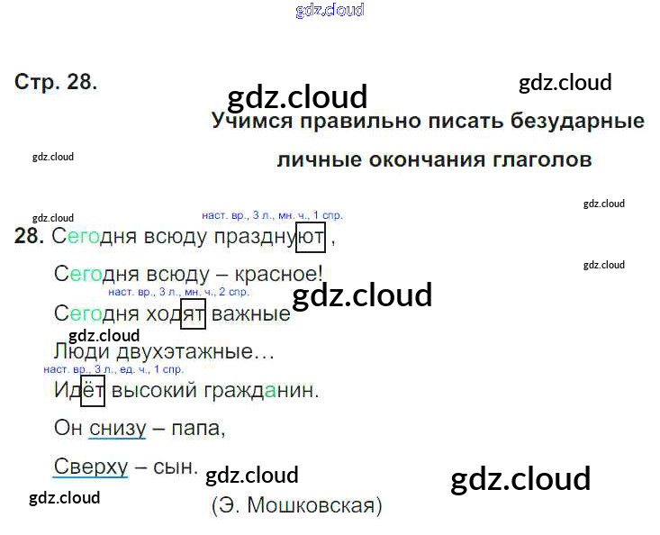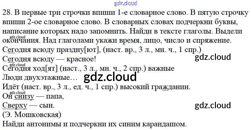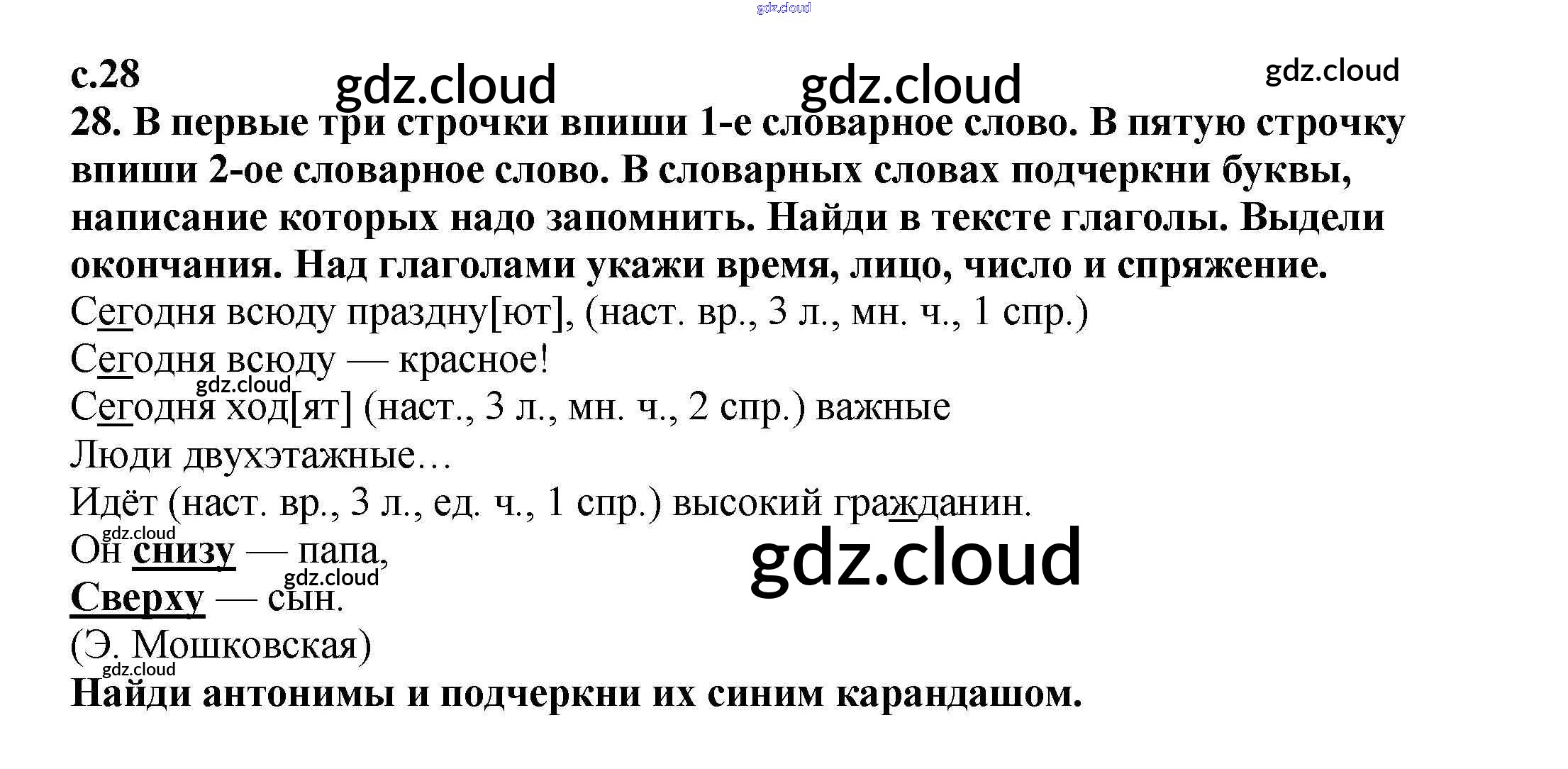 Ответ на задание 28 Тетрадь для самостоятельной работы Русский язык за 4 (четвертый) класс Байкова 2016 Часть 1, 2