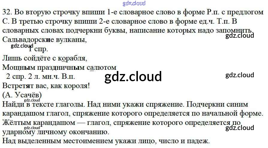 Ответ на задание 32 Тетрадь для самостоятельной работы Русский язык за 4 (четвертый) класс Байкова 2016 Часть 1, 2