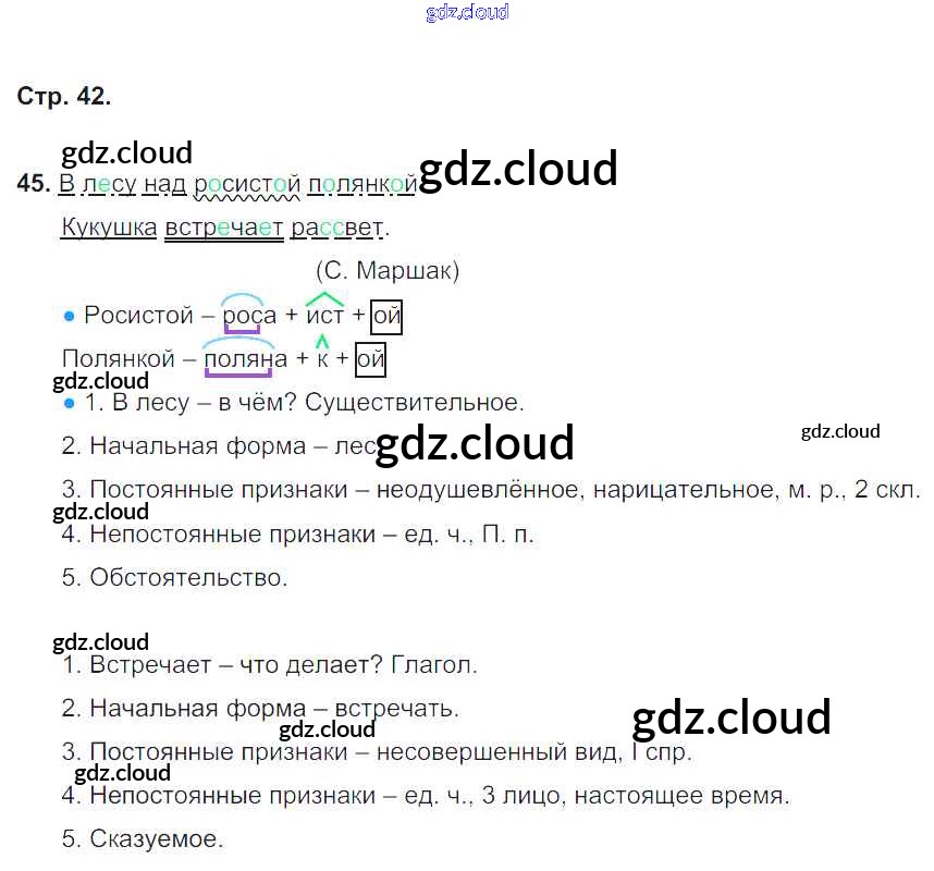 Ответ на задание 42 Тетрадь для самостоятельной работы Русский язык за 4 (четвертый) класс Байкова 2016 Часть 1, 2