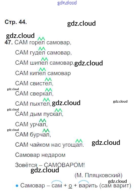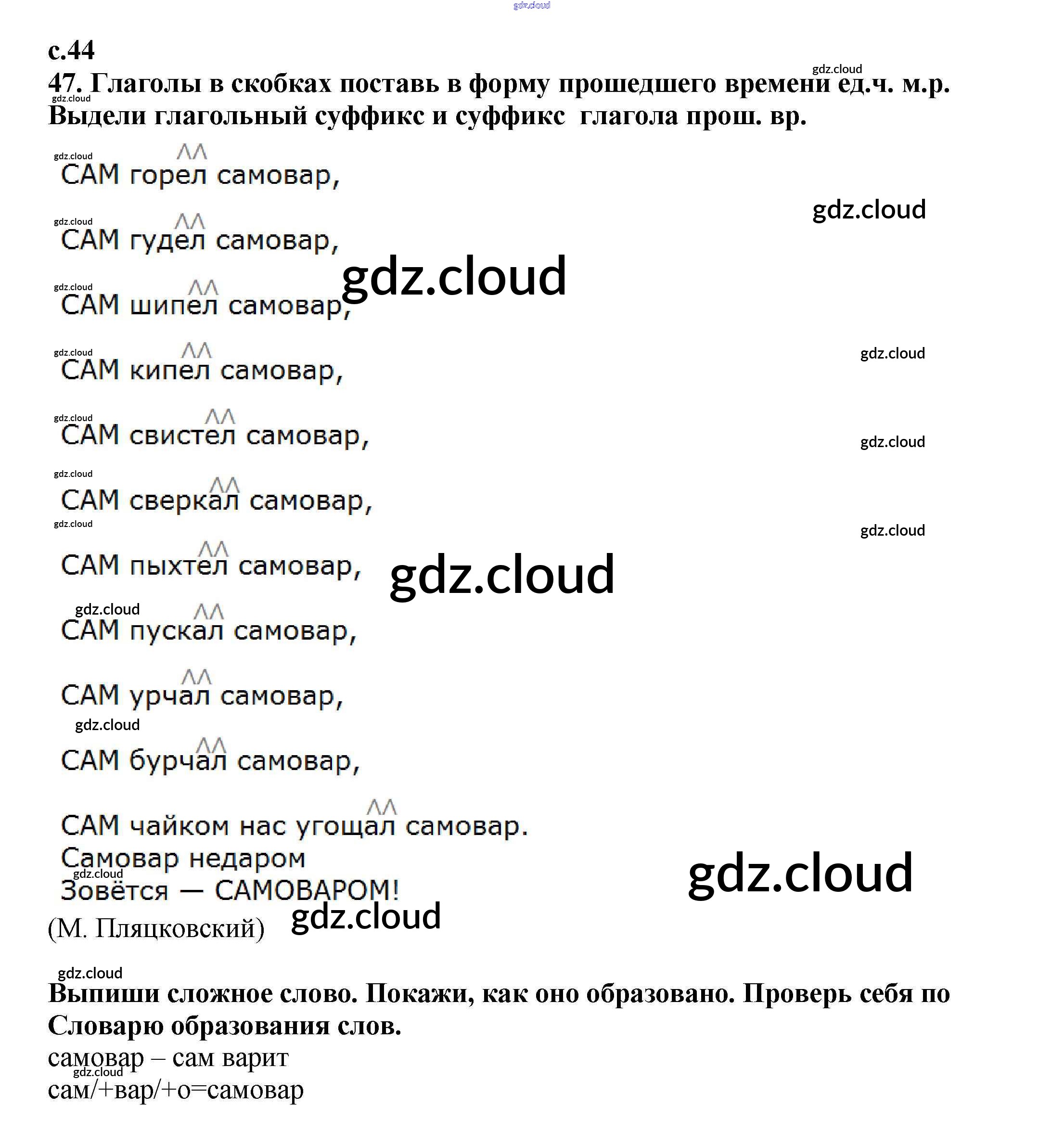 Ответ на задание 44 Тетрадь для самостоятельной работы Русский язык за 4 (четвертый) класс Байкова 2016 Часть 1, 2