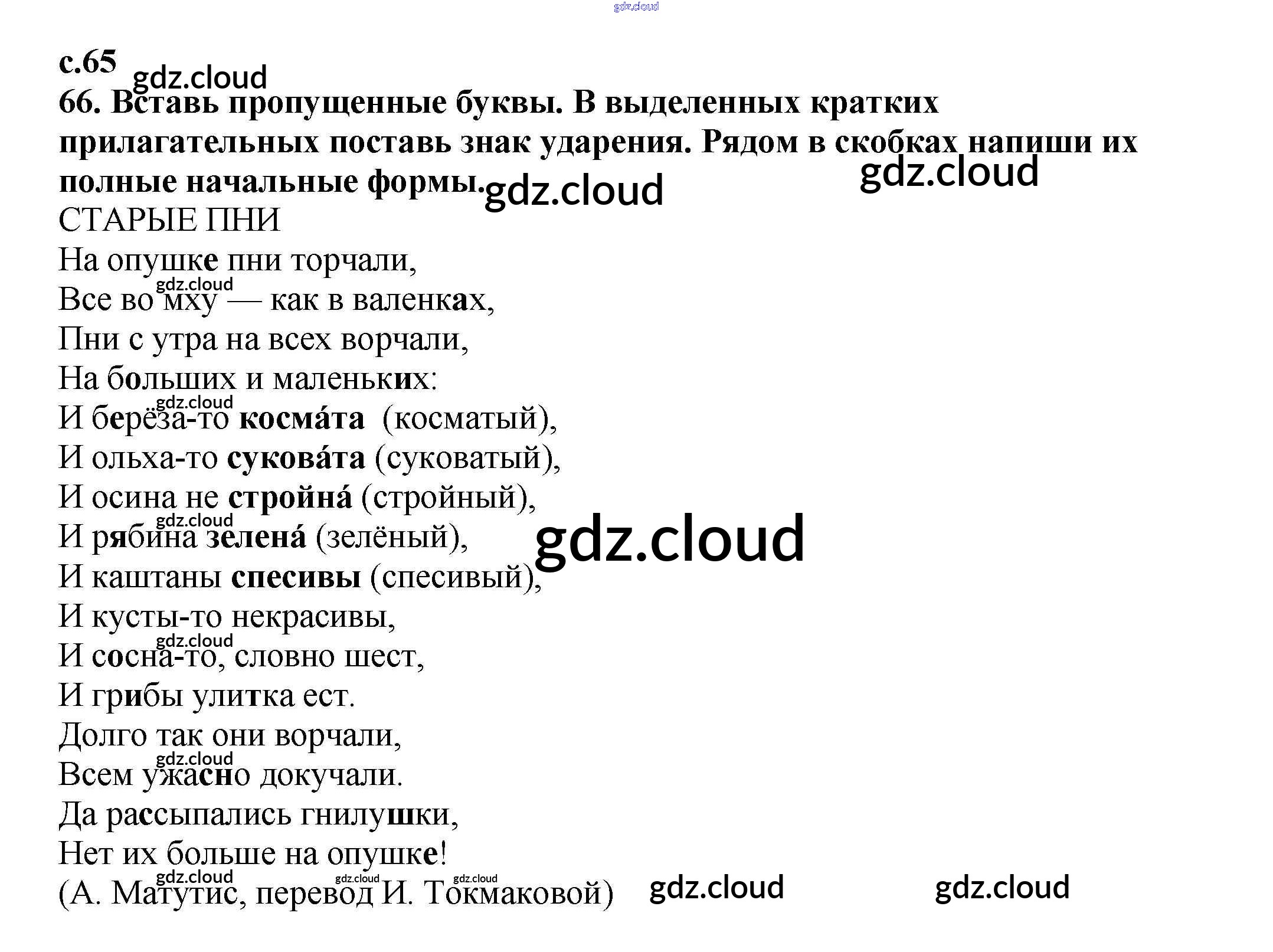 Ответ на задание 65 Тетрадь для самостоятельной работы Русский язык за 4 (четвертый) класс Байкова 2016 Часть 1, 2