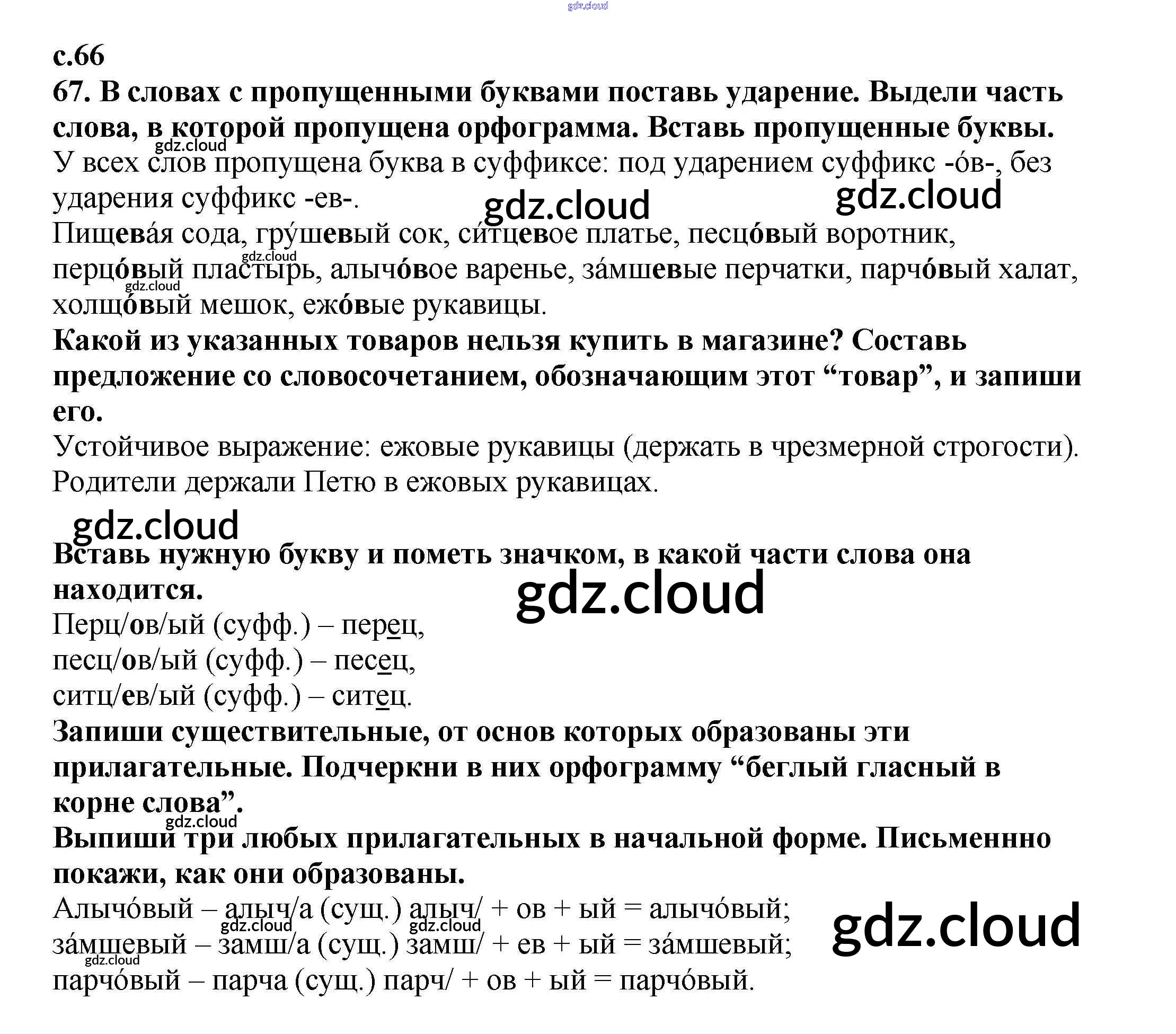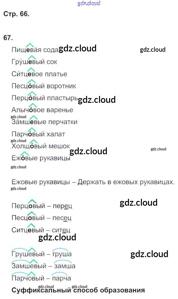 Ответ на задание 66 Тетрадь для самостоятельной работы Русский язык за 4 (четвертый) класс Байкова 2016 Часть 1, 2