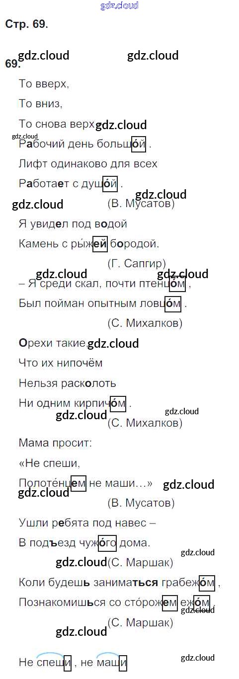 Ответ на задание 69 Тетрадь для самостоятельной работы Русский язык за 4 (четвертый) класс Байкова 2016 Часть 1, 2