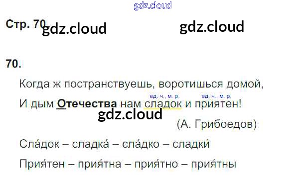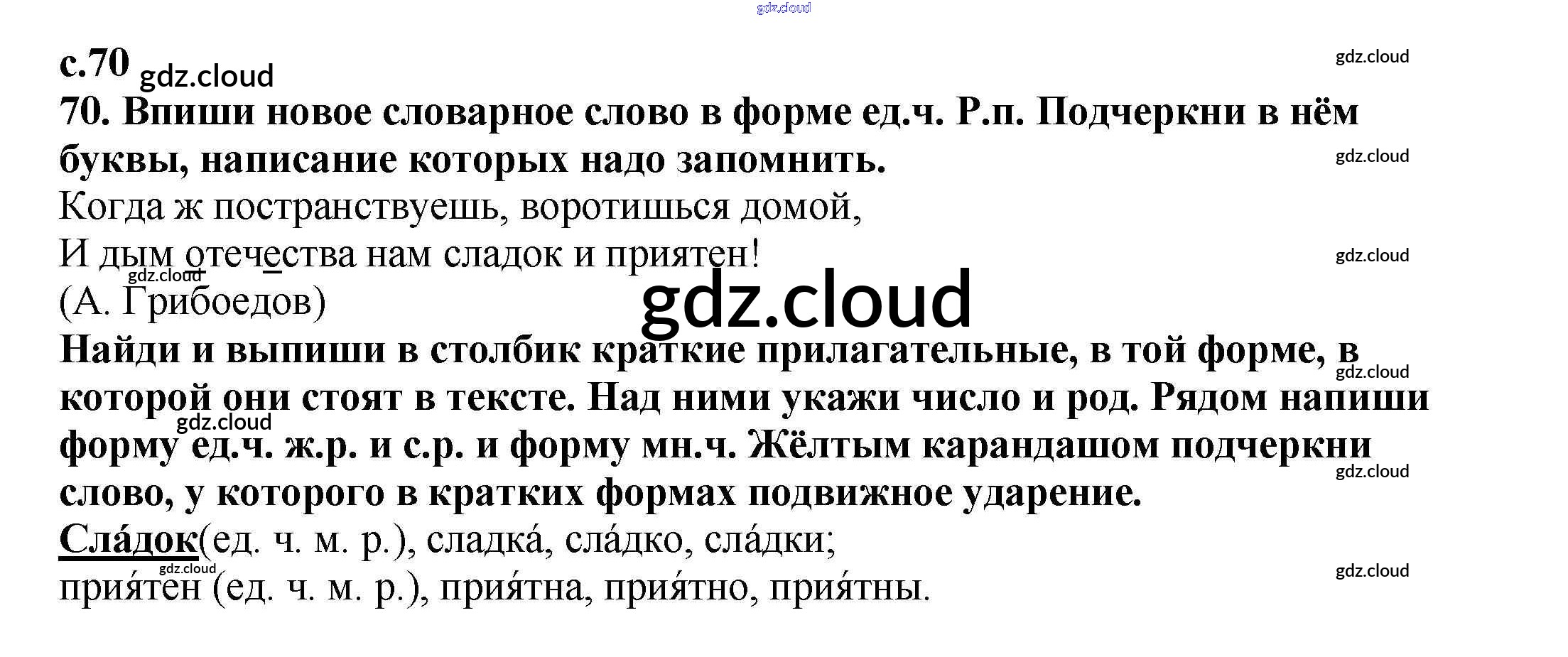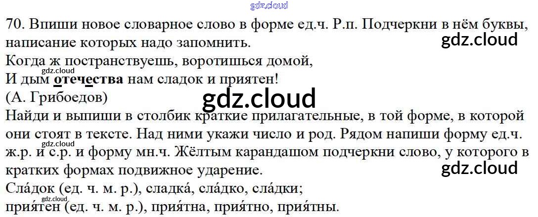 Ответ на задание 70 Тетрадь для самостоятельной работы Русский язык за 4 (четвертый) класс Байкова 2016 Часть 1, 2