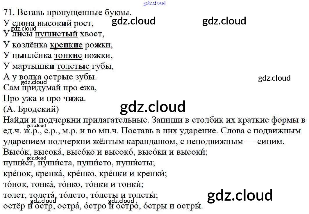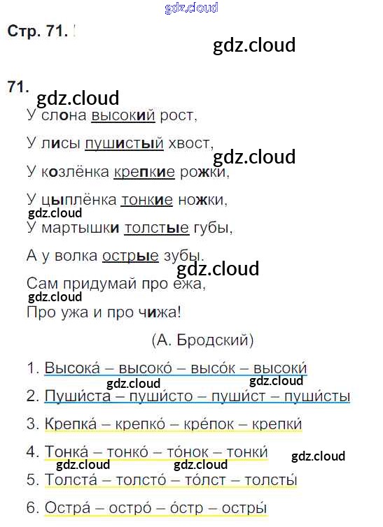 Ответ на задание 71 Тетрадь для самостоятельной работы Русский язык за 4 (четвертый) класс Байкова 2016 Часть 1, 2