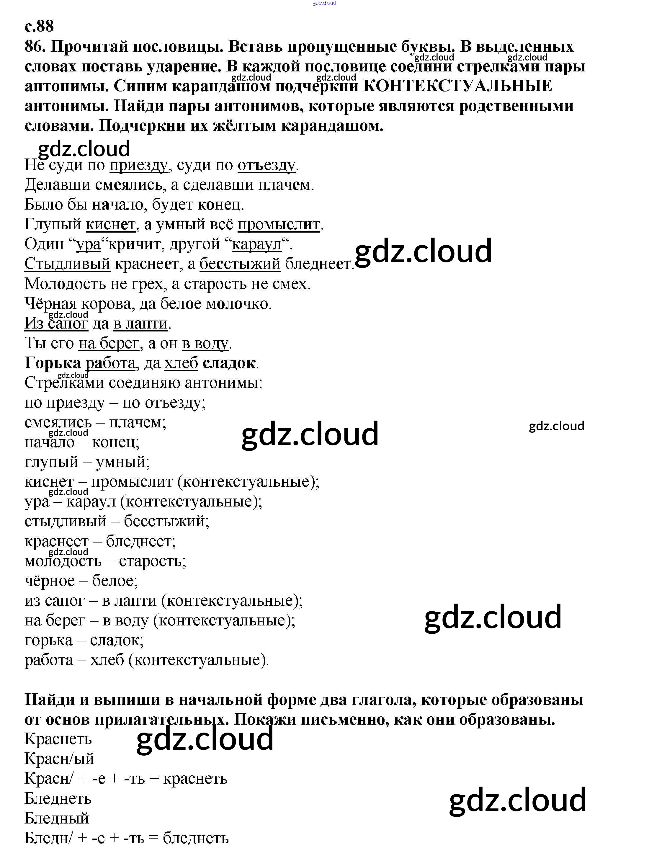 Ответ на задание 88 Тетрадь для самостоятельной работы Русский язык за 4 (четвертый) класс Байкова 2016 Часть 1, 2