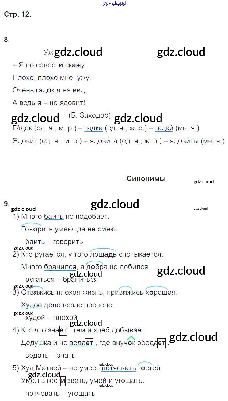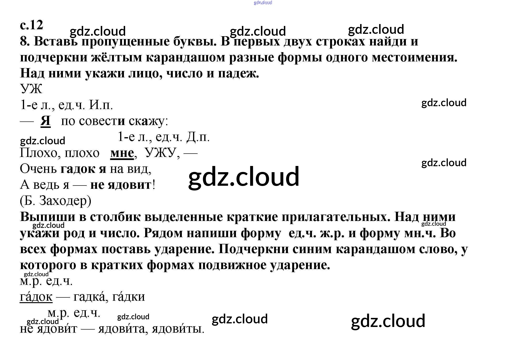 Ответ на задание 12 Тетрадь для самостоятельной работы Русский язык за 4 (четвертый) класс Байкова 2016 Часть 1, 2