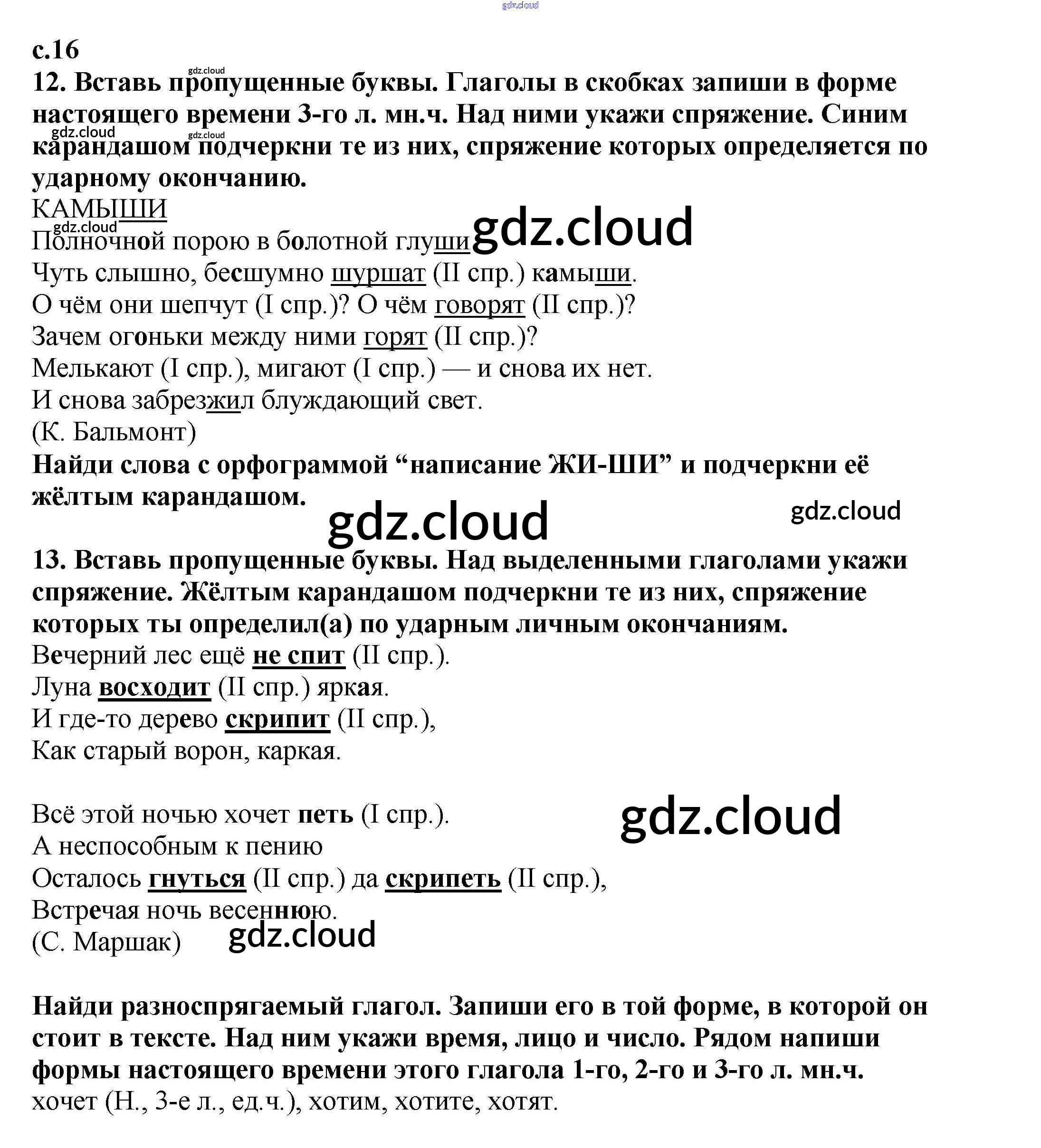 Ответ на задание 16 Тетрадь для самостоятельной работы Русский язык за 4 (четвертый) класс Байкова 2016 Часть 1, 2
