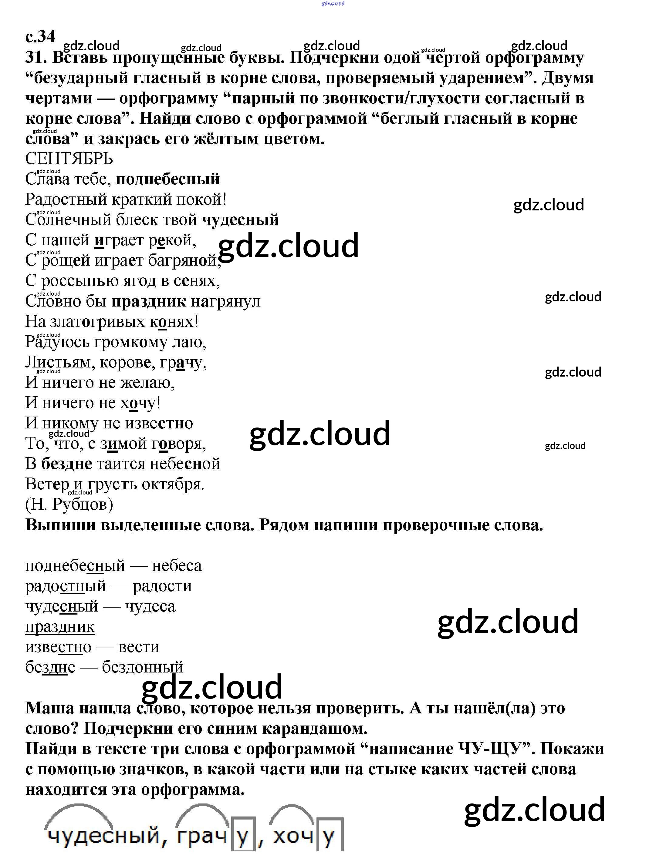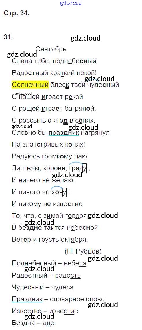 Ответ на задание 34 Тетрадь для самостоятельной работы Русский язык за 4 (четвертый) класс Байкова 2016 Часть 1, 2