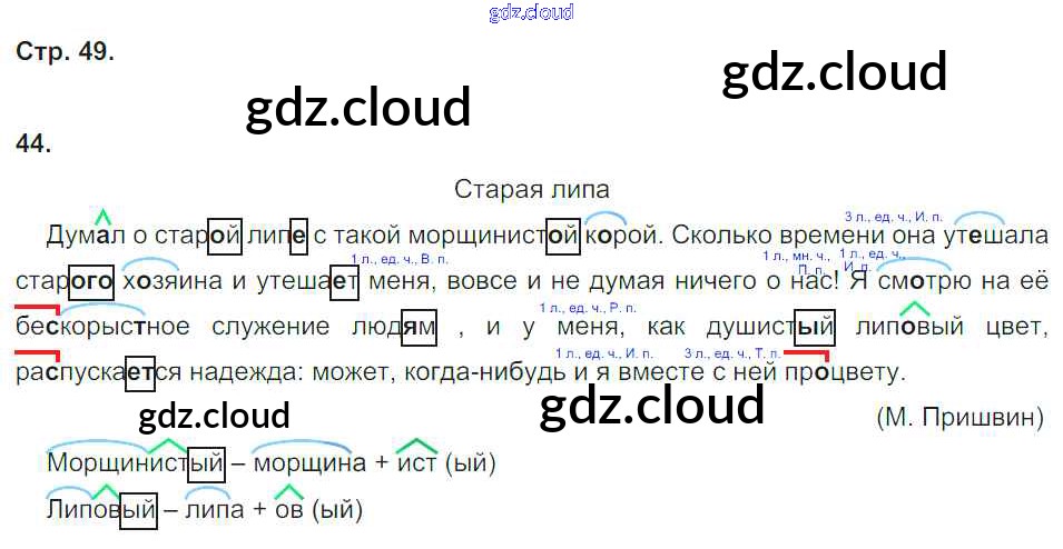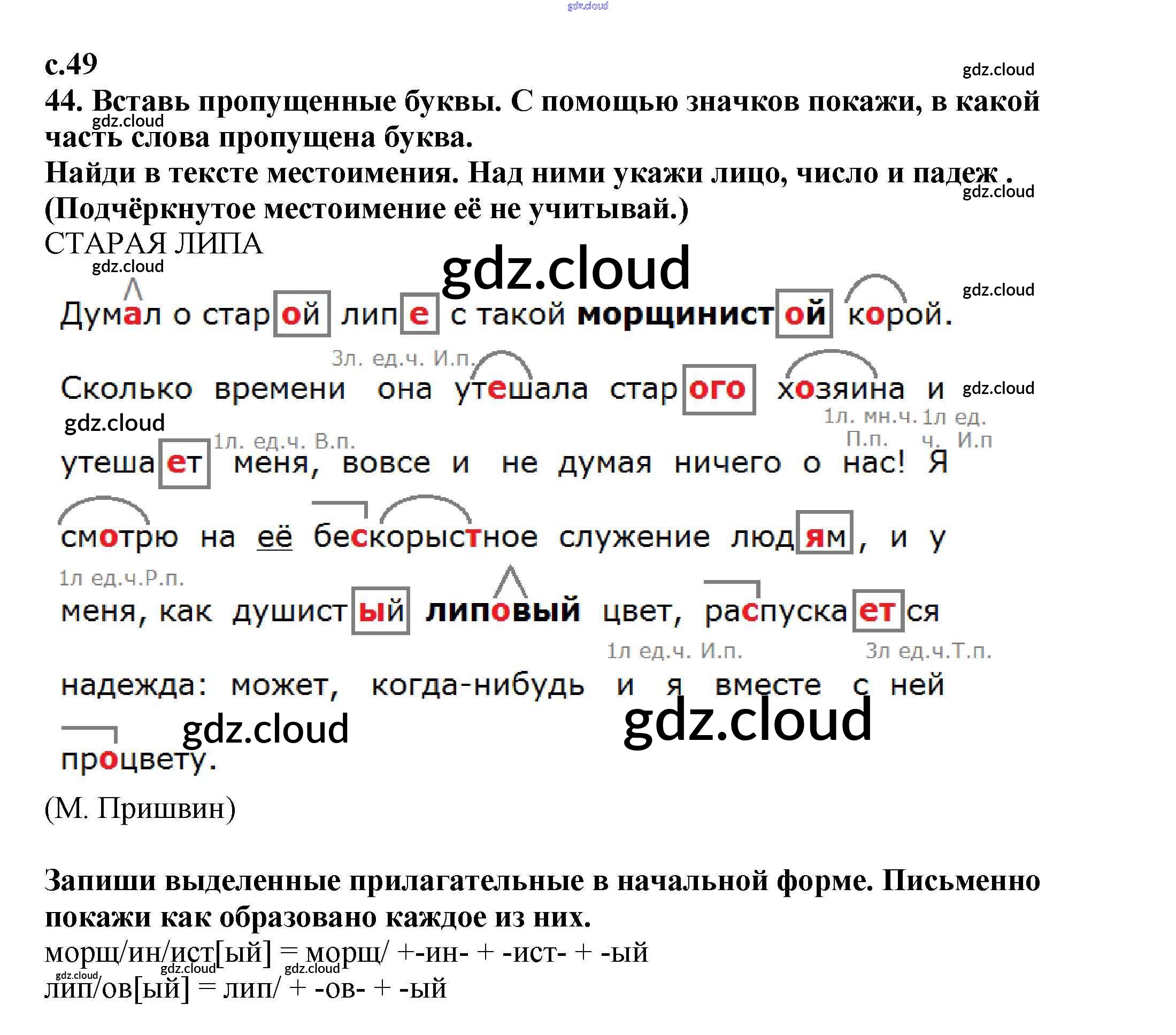 Ответ на задание 49 Тетрадь для самостоятельной работы Русский язык за 4 (четвертый) класс Байкова 2016 Часть 1, 2