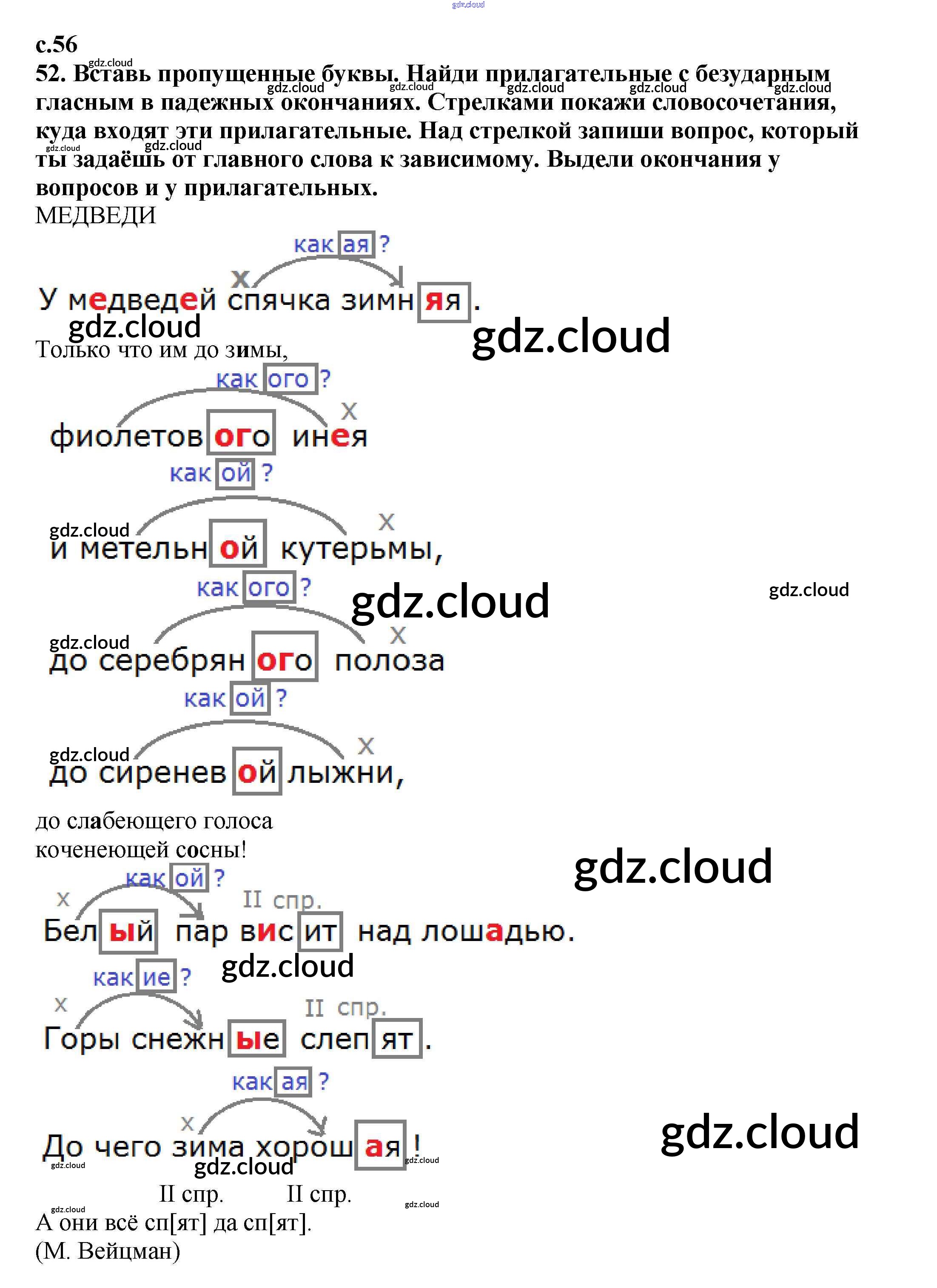 Ответ на задание 56 Тетрадь для самостоятельной работы Русский язык за 4 (четвертый) класс Байкова 2016 Часть 1, 2