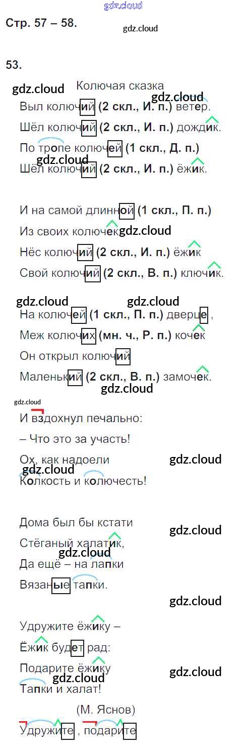Ответ на задание 57-58 Тетрадь для самостоятельной работы Русский язык за 4 (четвертый) класс Байкова 2016 Часть 1, 2