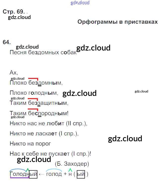Ответ на задание 69 Тетрадь для самостоятельной работы Русский язык за 4 (четвертый) класс Байкова 2016 Часть 1, 2