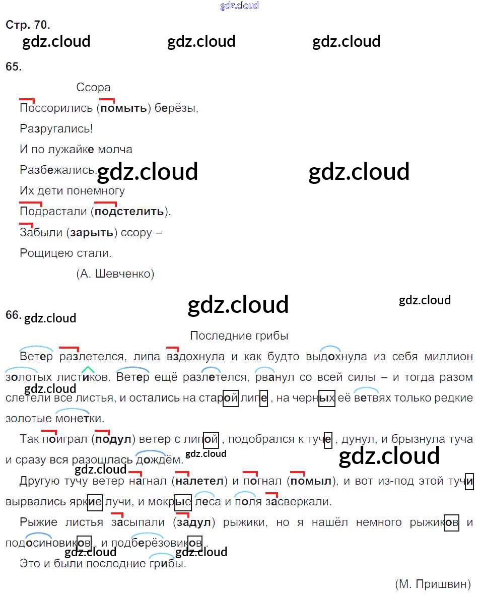 Ответ на задание 70 Тетрадь для самостоятельной работы Русский язык за 4 (четвертый) класс Байкова 2016 Часть 1, 2