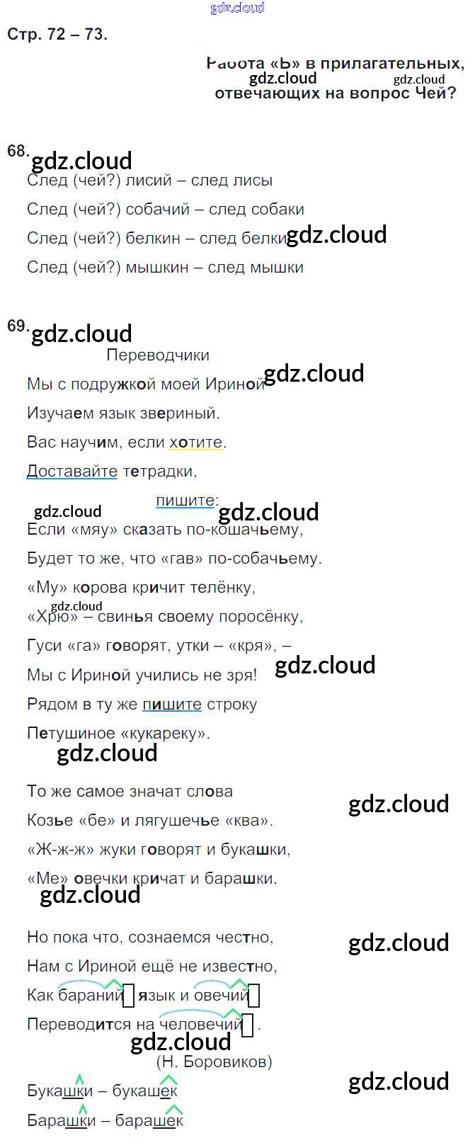 Ответ на задание 72-73 Тетрадь для самостоятельной работы Русский язык за 4 (четвертый) класс Байкова 2016 Часть 1, 2