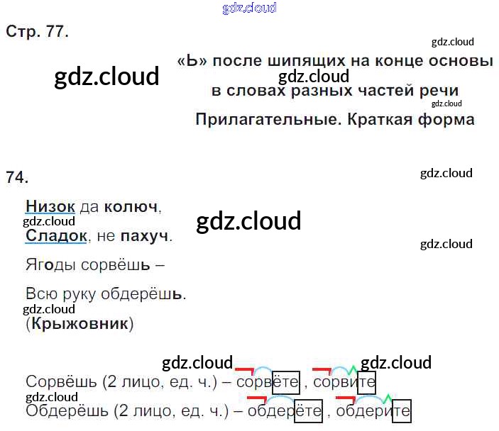 Ответ на задание 77 Тетрадь для самостоятельной работы Русский язык за 4 (четвертый) класс Байкова 2016 Часть 1, 2