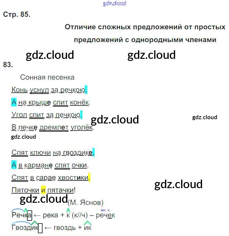 Ответ на задание 85 Тетрадь для самостоятельной работы Русский язык за 4 (четвертый) класс Байкова 2016 Часть 1, 2